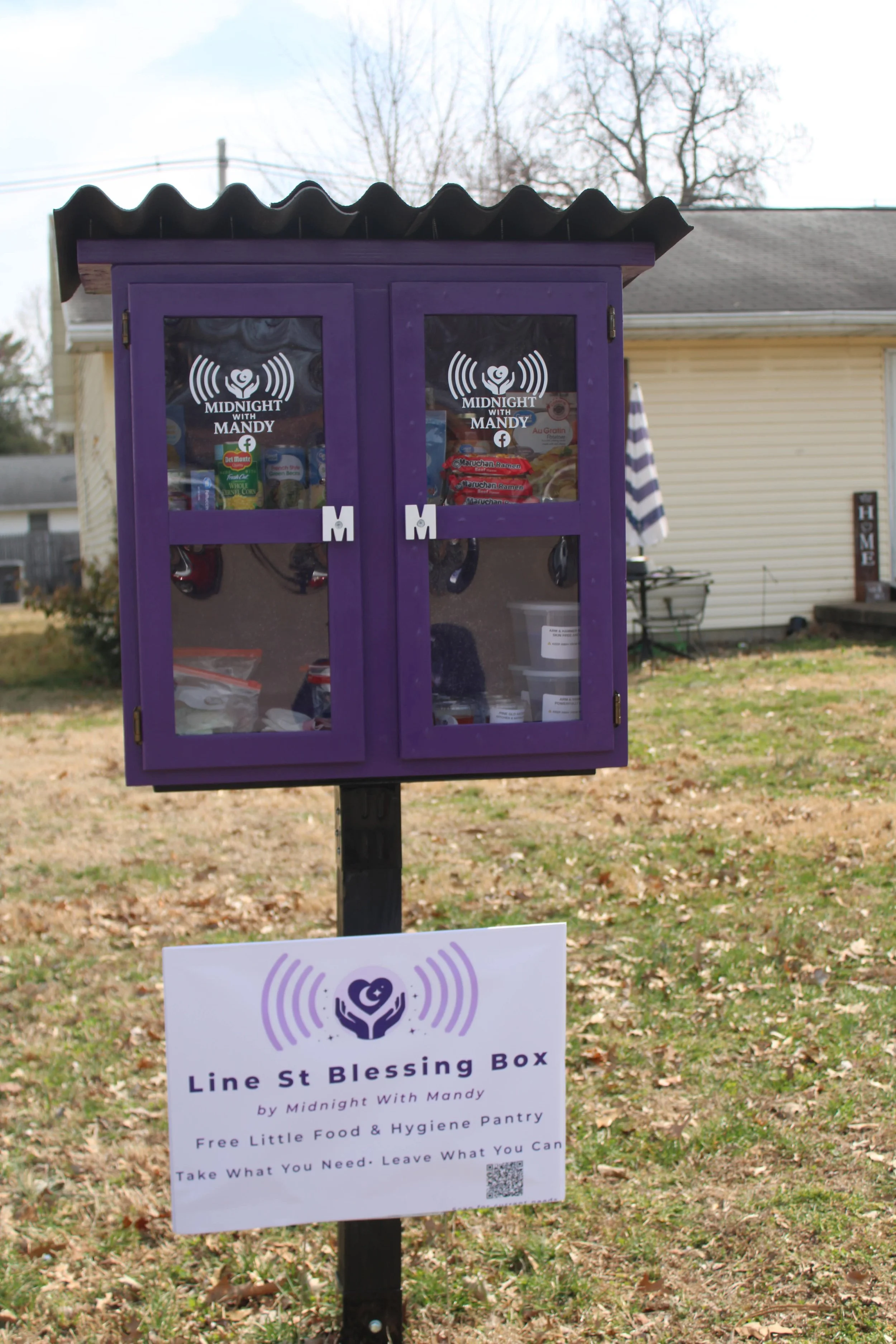The Line St Blessing Box by Midnight With Mandy is a small community food and hygiene pantry located at 816 Line St. This little pantry is here to support neighbors in our community by providing easy, no-questions-asked access to essential items.